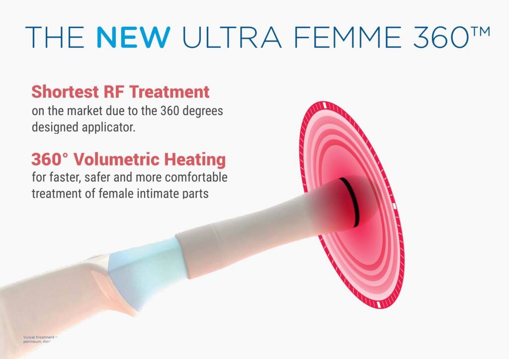 Femme 360 is a safe, and effective non-surgical alternative to vaginoplasty and labiaplasty procedures. ULTRA Femme provides complete vaginal rejuvenation including labial remodeling (labia reduction) and vaginal tightening with a single device. It stimulates collagen production and enhances blood flow. Painless with a warm heat sensation. No anesthesia is required and there is no downtime.